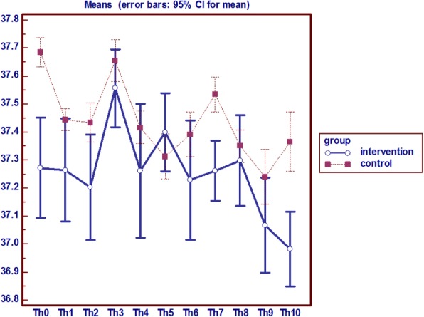 Analysis of variance with repeated measures on the hip (trochanter) temperature